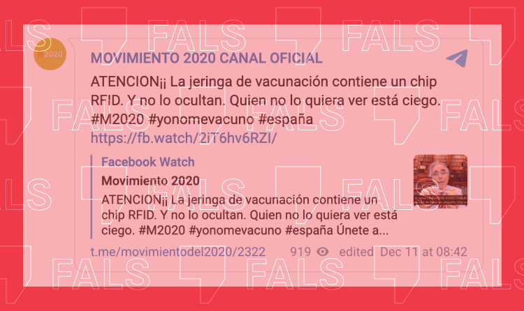Circula un vídeo que assegura que la vacuna de la Covid-19 incorporarà un dispositiu d'identificació…
