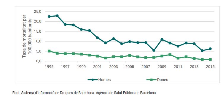Aquest descens es reflexa en les dades de morts per sobredosi a Barcelona de l’Agència de Salut Pública de la ciutat, que no publica xifres anteriors a 1995 ni posteriors a 2015.