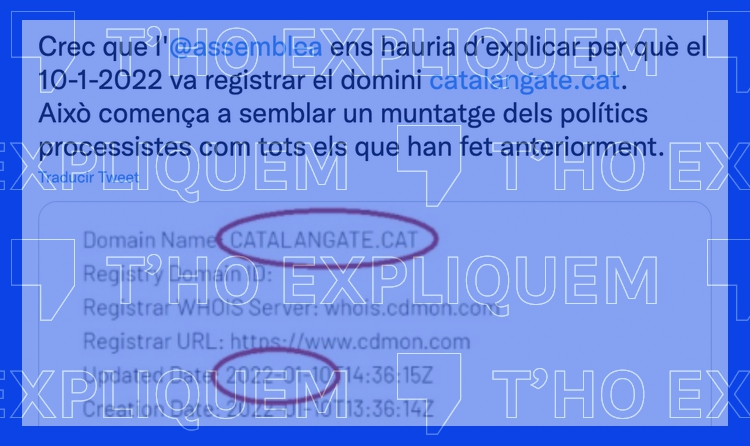 En els darrers dies, s'han publicat missatges a Twitter que dubten de l'informe de Citizen Lab sobre el cas conegut com a Catalan Gate, una investigació que ha conclòs que almenys 65 polítics independentistes i activistes catalans van ser espiats amb el programa informàtic Pegasus. Com a suposats arguments que es tracta d'un muntatge, diversos usuaris a Twitter han compartit captures d'imatge que mostren que el web catalangate.cat va ser registrat per l'Assemblea Nacional Catana el gener de 2022 i que el perfil de Twitter @CatalanGate va néixer el 2012.
