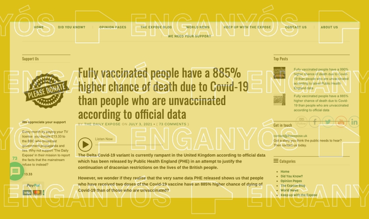 "Aquestes dades, publicades pel Servei de Salut Pública d'Anglaterra, ens mostren que la gent que ha rebut dues dosis d'una vacuna contra la covid-19 té una probabilitat de 885,7% major de morir a causa de la variant Delta que la gent no vacunada"