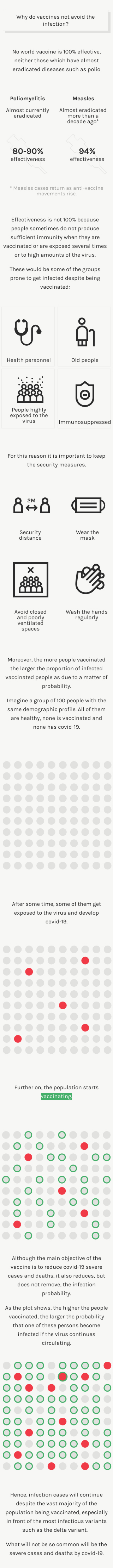 In itself, these data are correct, but the conclusions drawn in the article (vaccines do not work because there are already more cases of deaths among the vaccinated than among the unvaccinated) are not. As Adelaida Sarukhan, an immunologist and scientific writer at the Institute for Global Health (ISGlobal in Catalan) in Barcelona, points out to Verificat, the text refers to percentages (of a very specific week, moreover), when what should be looked at, she insists, is the absolute values: "The number of deaths in unvaccinated people (several thousand deaths) versus the number of deaths in fully vaccinated people (less than 100)". She adds: "The title of the article is totally misleading.