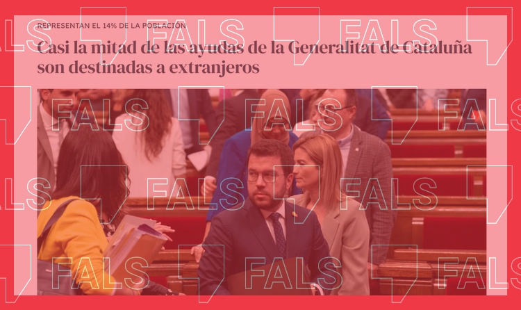 Dos portals digitals han publicat que "quasi la meitat de les ajudes de la Generalitat de Catalunya són destinades a estrangers". Segons aquestes pàgines, que citen a Vox com a font, representen el 40% dels "beneficiaris de la Renda Garantida de Ciutadania a Catalunya" i el 43% de les "adjudicacions d'habitatge públic" quan suposen el "14% de la població". Dies més tard, en una roda de premsa el 18 d’octubre, també va difondre aquestes dades el diputat de Vox al Parlament de Catalunya Joan Garriga, qui va dir que eren dades de la Generalitat.