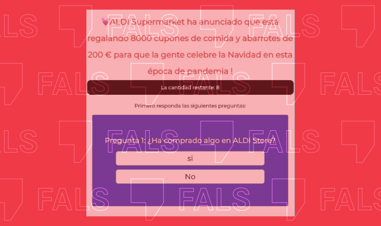 Nos hemos puesto en contacto con ALDI, cadena de supermercados nacida en Essen (Alemania) y que, actualmente, está presente en Europa, Norteamérica y Australia, y nos confirman que el mensaje es una estafa. "La página no es de ALDI y se ha hecho un post en la cuenta de Twitter de ALDI para avisar a los clientes", ha afirmado a Verificat su equipo de comunicación.