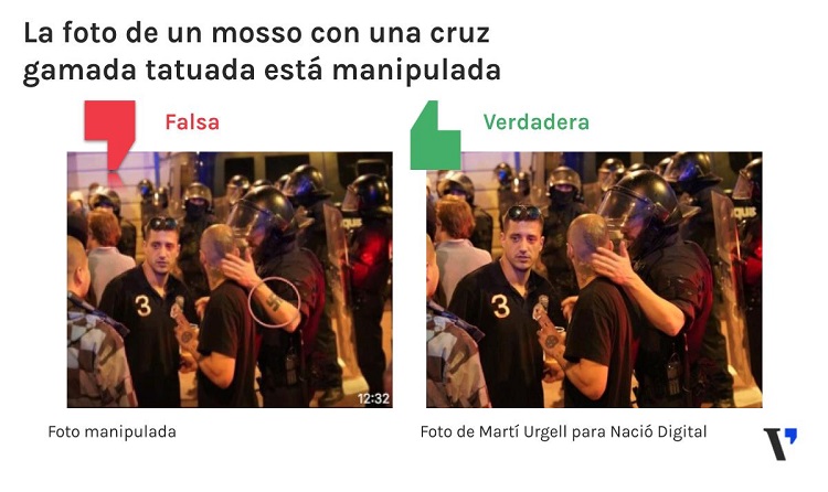 Esta foto viral de un mosso en plaça Artós ha sido manipulada para ponerle una…