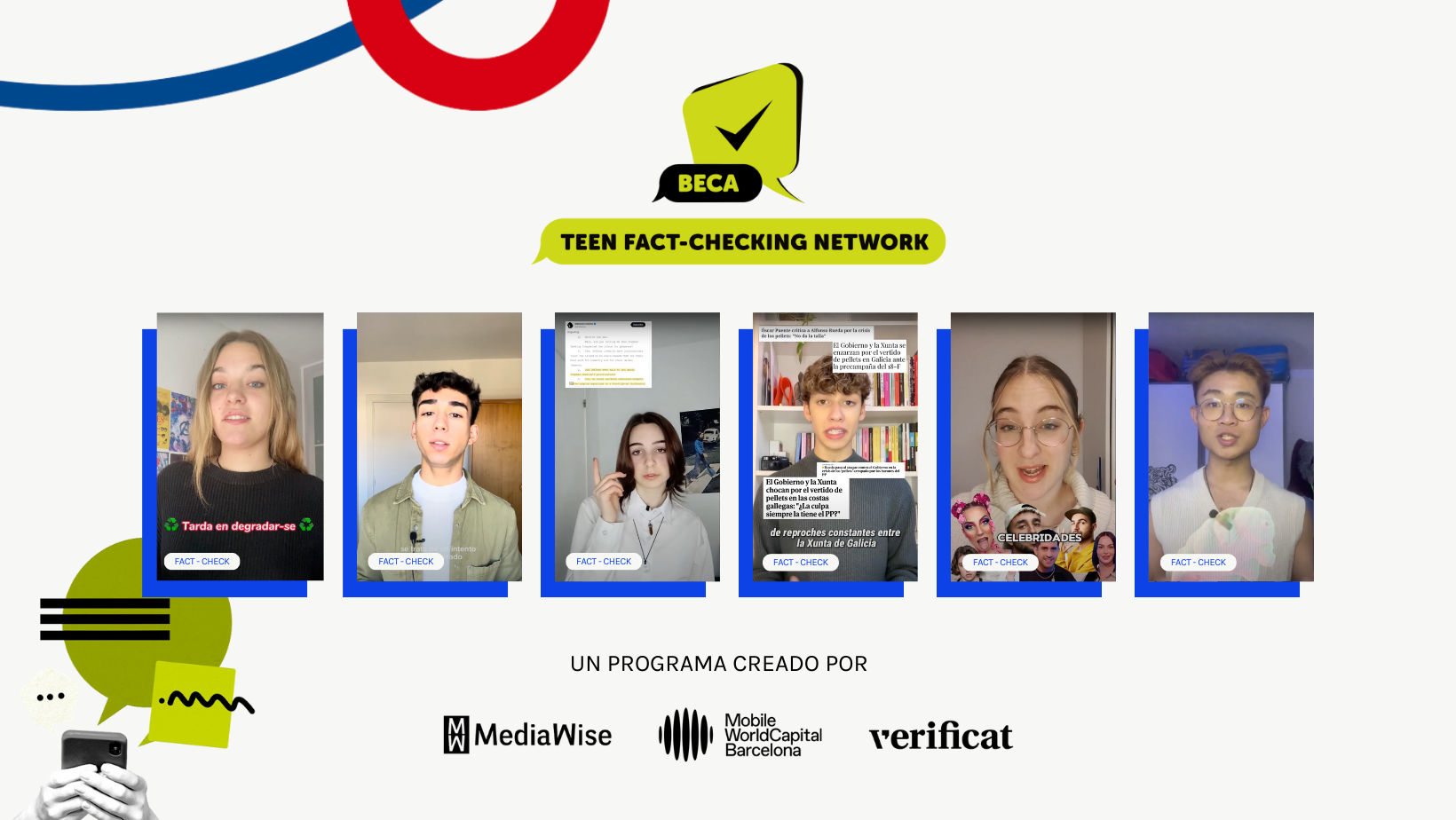 Si tienes entre 15 y 19 años y te gusta el periodismo, seguir las redes sociales y hacer vídeos, esto es para ti: Verificat y MediaWise, con el apoyo de la Mobile World Capital Foundation, han renovado la Beca Teen Fact-Checking Network para que 10 jóvenes de todo el estado aprendan a verificar contenidos y publiquen sus investigaciones en Instagram y TikTok.