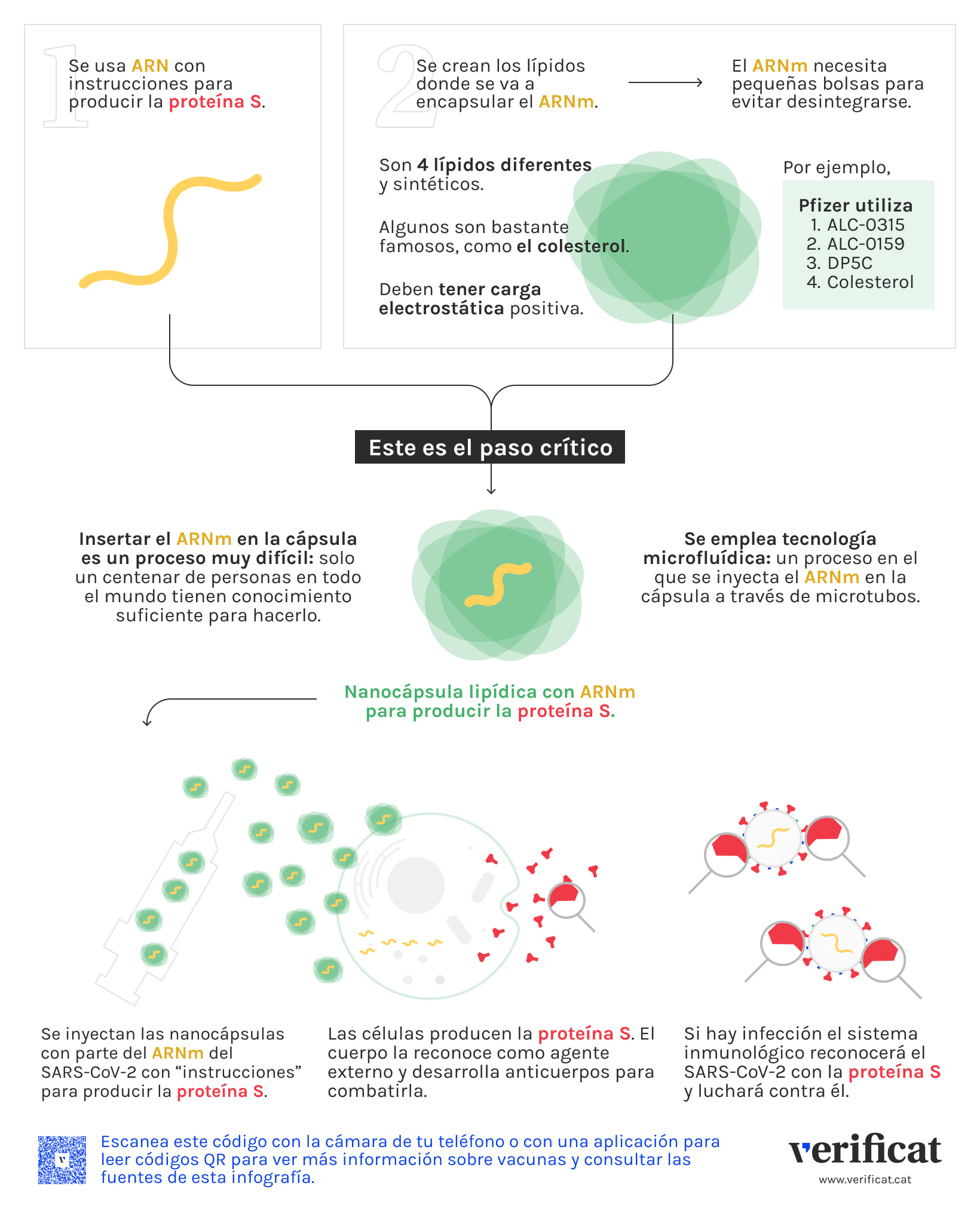 Y no, este tipo de vacunas no modifican el código genético de quien las recibe, como ya hemos explicado. Los viales de ARNm, como el de Pfizer o el de Moderna, están hechos de un fragmento de código genético del coronavirus, que se incorpora a una cápsula lipídica que lo transporta hasta las células. Ahí, desencadena una respuesta inmune en el cuerpo que, en el momento de entrar en contacto con el SARS-CoV-2, puede combatirlo y evitar así cursar los cuadros más graves de la enfermedad. Sin embargo, tal y como indican desde la web de la Alianza para la Vacunación (GAVI, en inglés), estas vacunas no son capaces de alterar nuestro ADN porque, primero, “ARN no es lo mismo que ADN”, y porque este ARN “no se puede combinar con nuestro ADN para cambiar nuestro código genético”. Además, el ARN “es muy frágil (de ahí que necesite ser transportado por estas nanopartículas de grasa hasta la célula), y se mantendrá en el interior de la célula en 72 horas antes de que se degrade”.