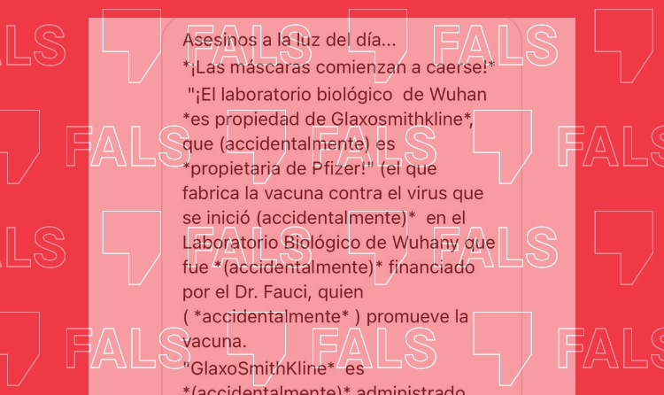 Nos habéis hecho llegar un mensaje de Instagram que asegura que “el laboratorio biológico de Wuhan es propiedad de GlaxoSmithKline [GSK], que es propietaria de Pfizer”. También afirma que tal laboratorio ha sido financiado por el director del Instituto Nacional de Alergia y Enfermedades Infecciosas de Estados Unidos Anthony Fauci. Estas relaciones son ENGAÑOSAS y FALSAS. La farmacéutica GSK no es dueña del laboratorio de Virología de Wuhan, ni tampoco le pertenece la farmacéutica Pfizer. Tampoco hay evidencias de que Anthony Fauci haya financiado de forma individual estas instalaciones, aunque los Institutos Nacionales de Salud de Estados Unidos (NIH), de los que depende su departamento, sí han financiado a una organización que a su vez ha invertido en un proyecto de investigación sobre coronavirus que se está llevando a cabo en Wuhan, entre otros centros.