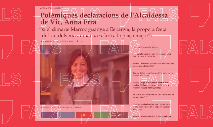 Que la alcaldesa de Vic, Anna Erra, cedería la Plaza Mayor del municipio “a los musulmanes” para que celebrasen “su fiesta del sacrificio” si Marruecos ganaba a la selección española en los octavos de final del Mundial de Catar.