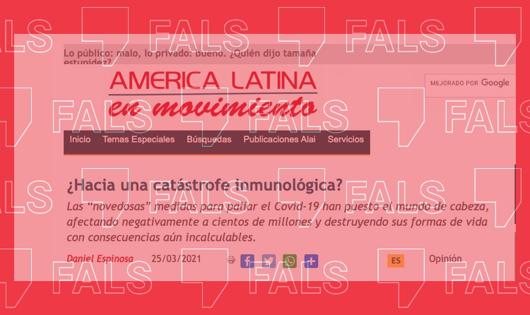 El portal Agencia Latinoamericana de Información (ALAINET) ha publicado un artículo criticando, entre otras cosas, la campaña mundial de vacunación y la efectividad de las cuarentenas para evitar diseminar los virus valiéndose de argumentos de ciertos expertos que la cuestionan, como es el caso de Jemma Moran, la jefa de comunicaciones del grupo Hart —asociación de médicos, economistas, académicos y científicos británicos—, quien asegura que “las variantes parecen provenir de lugares donde se realizaron cuarentenas generales, como Inglaterra”. Es FALSO: El origen de una variante no suele conocerse al 100%. La variante de un país concreto no lleva tal nombre porque haya nacido o surgido ahí (o no necesariamente), sino porque ha sido detectada ahí. Además, algunas de las variantes que más han preocupado a la comunidad científica se han detectado en países con pocas restricciones de movimiento como Brasil o India.