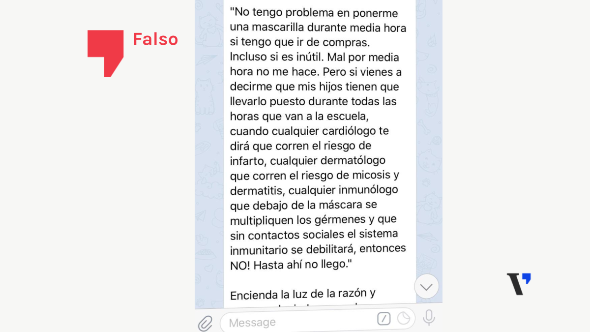 Por ejemplo, un mensaje que dice que si los menores la llevan durante muchas horas, pueden estar en peligro de tener un infarto, dermatitis, micosis o debilitación del sistema inmune. Es FALSO.