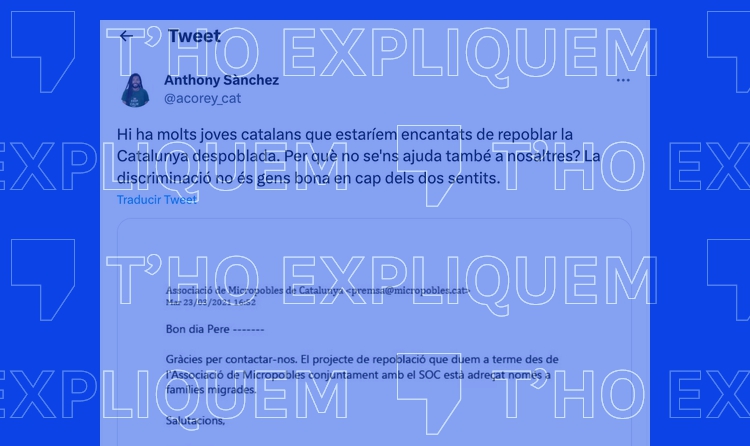 Que un projecte per repoblar pobles de Catalunya és discriminatori perquè només és per a immigrants i les persones amb nacionalitat espanyola no se’n poden beneficiar.