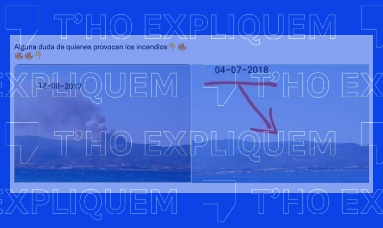 Diferents missatges que s'han compartit a Twitter i Facebook recentment comparen dues imatges que suposadament mostren com s'ha construït un parc eòlic a la mateixa zona on es va produir un incendi un any abans. "Algun dubte de qui provoquen els incendis?", es pregunta en castellà l'usuari, plantejant que les flames van ser provocades per poder instal·lar aerogeneradors. El muntatge mostra, a la part superior, una imatge d'una zona on hi ha un incendi amb la data 12 d'agost del 2017 i, a la part inferior, el mateix lloc amb la data 4 d'agost del 2018 i una fletxa assenyalant un parc eòlic que s'ha construït a prop.
