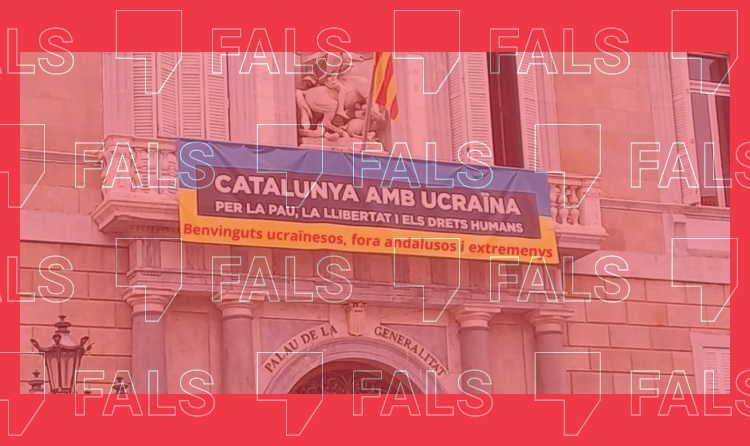 La pancarta del Palau de la Generalitat en solidaritat amb Ucraïna no diu “fora andalusos i extremenys”: és un muntatge