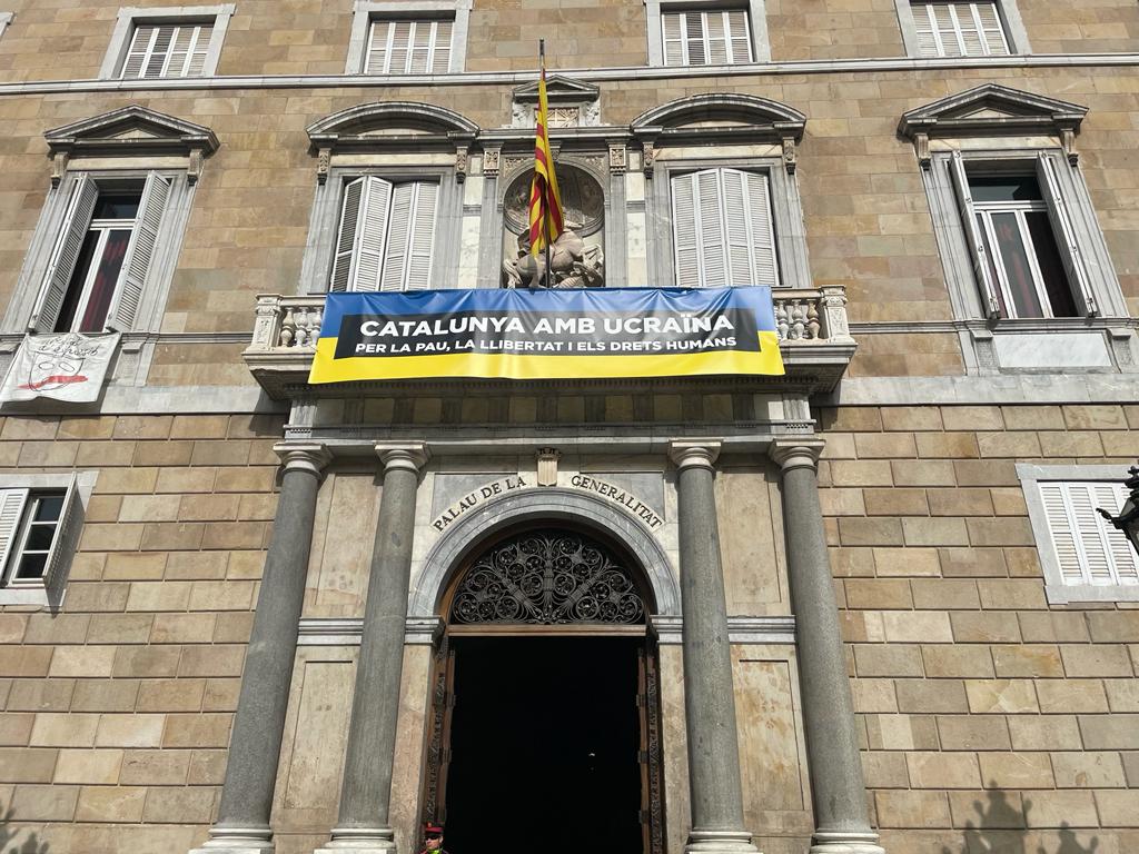 El passat dijous 3 de març, el govern català va celebrar un acte de suport al poble ucraïnès al Palau de la Generalitat amb el lema “Catalunya, Europa, amb Ucraïna”. En acabar, es va penjar una pancarta al balcó del Palau, com explica la nota de premsa del Govern.