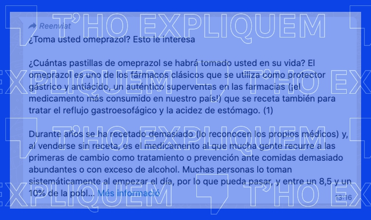 “S'ha prescrit massa”, assegura a Verificat Ermengol Sempere, membre del Grup de treball d’utilització de fàrmacs de la Societat Espanyola de Medicina de Família i Comunitària (semFYC). L’expert apunta que l’omeprazol se sol receptar de forma errònia com a protector gàstric quan el pacient ha de prendre un antiinflamatori, però en realitat “la gastroprotecció només està indicada en persones majors de 60 o 65 anys o en persones que tenen antecedents gàstrics" com una úlcera.