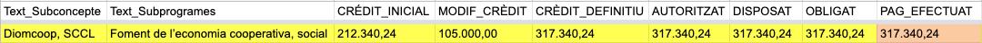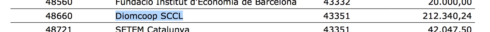 I finalment, s’han destinat 317.340 euros a la cooperativa Diomcoop el 2018, segons el document que recull l’execució del pressupost a desembre del 2018. La xifra representa un 49,44% més del que estava inicialment pressupostat.